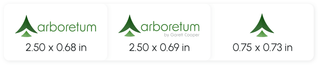 The icon, brand name, and creator name can be combined to create the three approved Arboretum logos: the icon logo, the wordmark logo, and the creator name logo. In addition, black and white versions of all logos were created for use on backgrounds where the full colour version is not possible.