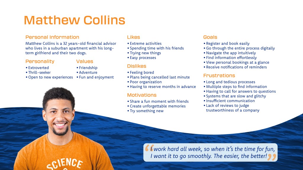 This persona isn’t interested in weighing pros and cons to find the most optimized option, but rather wants a quick and easy process that will allow them to have fun without getting a headache from all the planning. Thus, I have kept the app’s workflow simple and open to avoid overwhelming the user, and make all important features available at a glance.