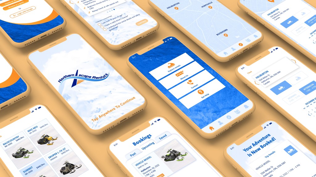 In order to provide a better user experience, I designed a new app for Northern Xscape Rentals. The app is a virtual one-stop-shop, allowing clients to complete the entire rental cycle with a click, from the onboarding process, to the final experience review.