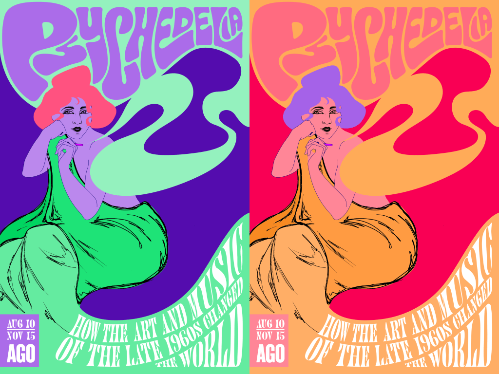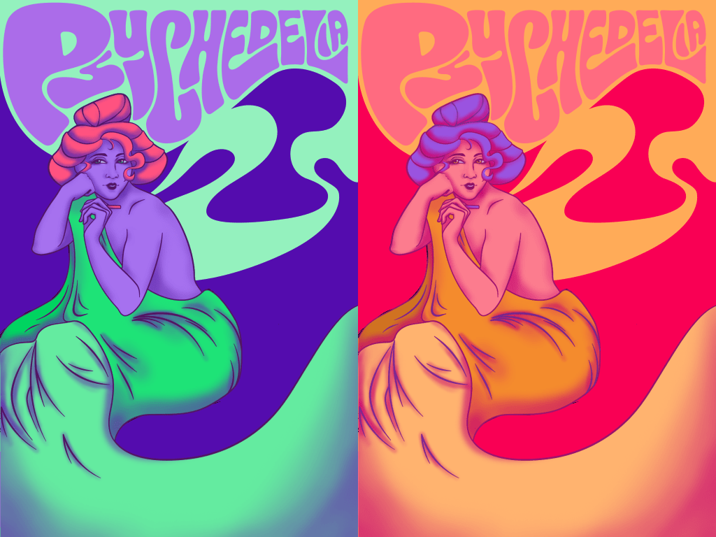 I created this mesmerizing moving poster for a made-up museum exhibit on the Psychedelic Era, a period characterized by a revival of Art Nouveau with an added multicoloured hallucinatory layer. Here, I made use of the bright colours that were a staple of Psychedelic art and set my focus on capturing the fluidity of organic movement.